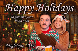 ![]() Emma & Migle ginerbread houses (icing on gingerbread) | ![]() 2019 holiday card (digital) |